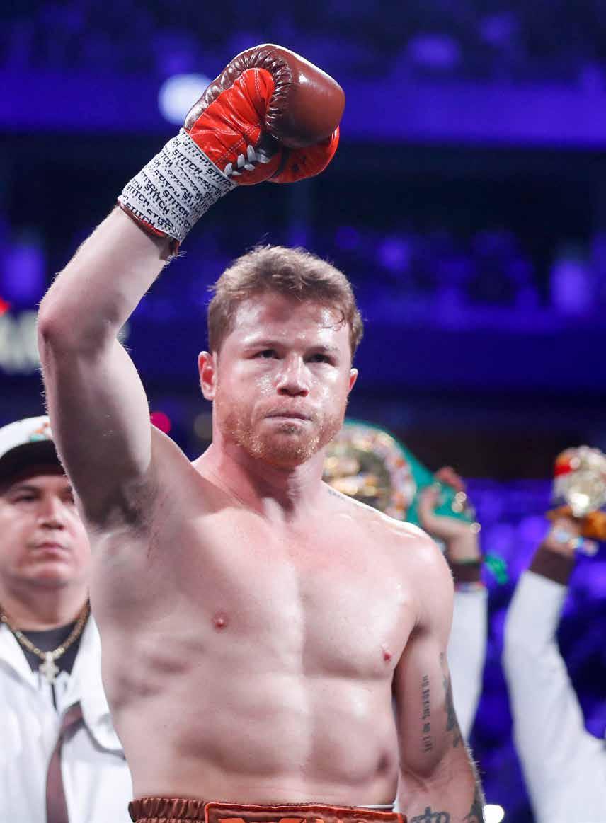 LAS VEGAS. El campeón mexicano, Saúl Álvarez, salió con la mano en alto y sus fajines en la cintura, al vencer por decisión unánime al boricua Edgar Berlanga.