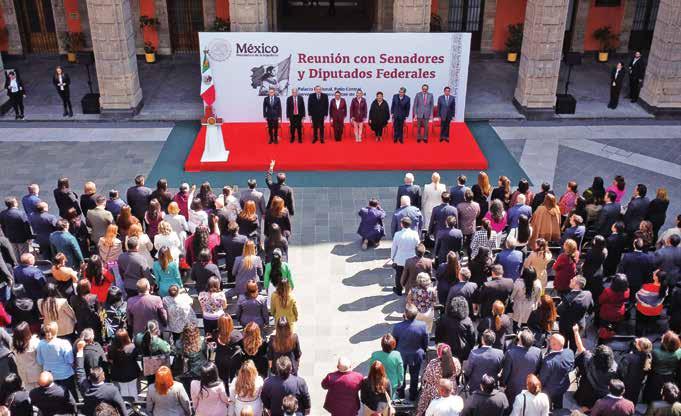tura, donde se han consumado reformas constitucionales del anterior sexenio y de este. Sergio Gutiérrez Luna, presidente de la Mesa Directiva en la Cámara de Diputados, asegur ó que la reunión fue un encuentro amable donde recibieron felicitaciones por parte de la Presidenta luego de meses en los que han salido reformas constitucionales como la del Poder Judicial. “Hicimos una recapitulación de las reformas que hemos hecho, estuvieron los representantes y coordinadores de los tres partidos: PVEM, PT y Morena, refrendamos todos que cuenta con nosotros, que