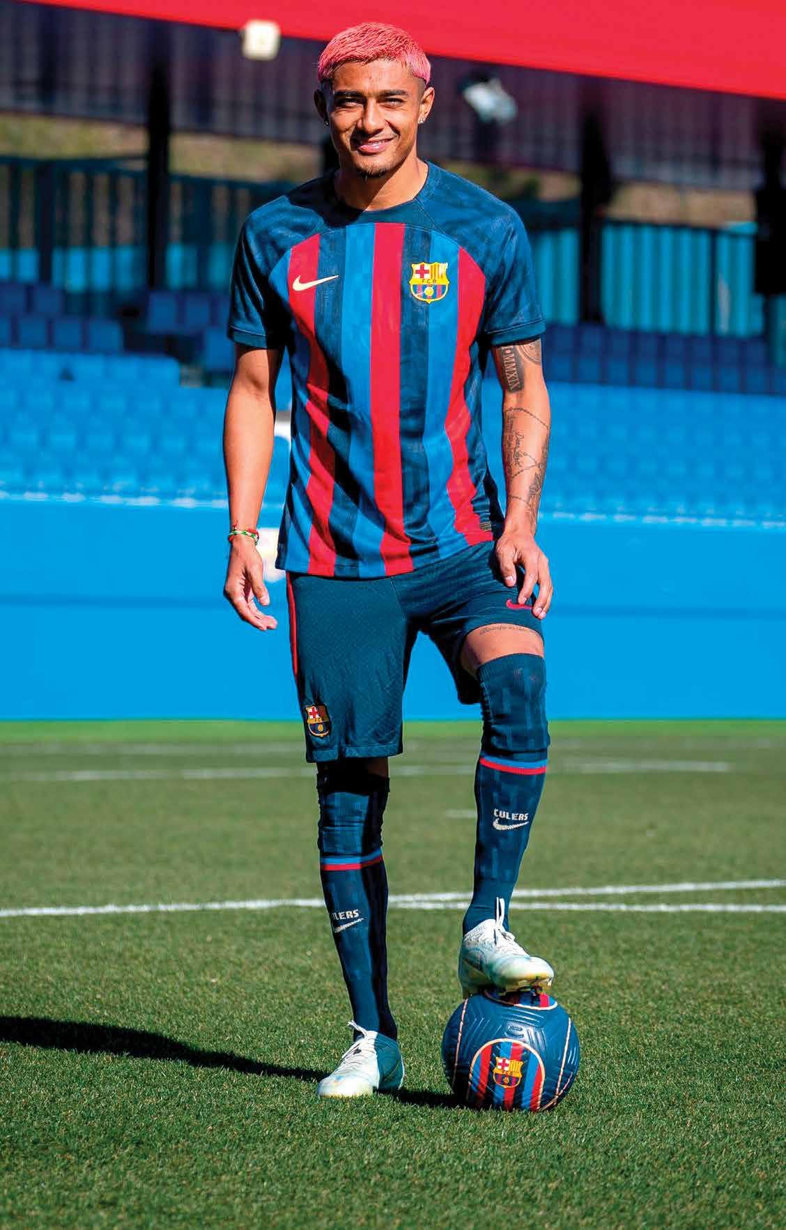 El lateral derecho posó con el uniforme de los culés y su cabello rosa, tras firmar su vínculo con el club hasta el verano de 2026.