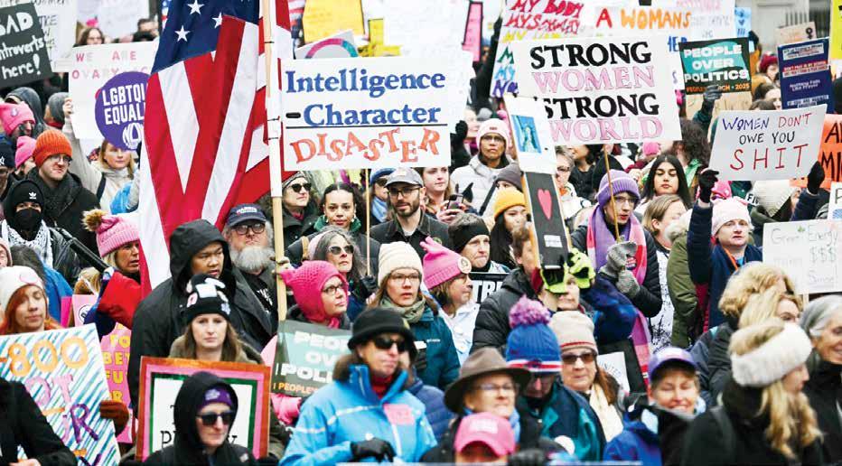 Los manifestantes protestan contra una serie de temas que consideran bajo ataque por Trump y los líderes de su partido, incluyendo el acceso al aborto, derechos para la comunidad LGBTQ, el cambio climático, protecciones contra la violencia armada, y los derechos de los inmigrantes.