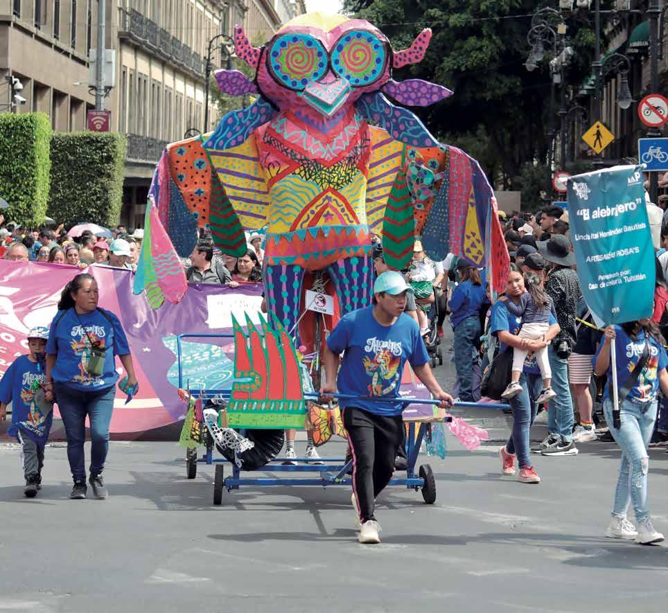 Con formas zoomorfas y fantásticas, estas figuras hechas a partir del arte popular de la cartonería, se abrieron paso por las calles más emblemáticas del centro de la ciudad como 5 de Mayo, para llegar a Avenida Juárez y finalizar en el Ángel de la Independencia, en Reforma.