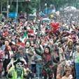 l Miles de personas lucieron terroríficos disfraces de zombie.