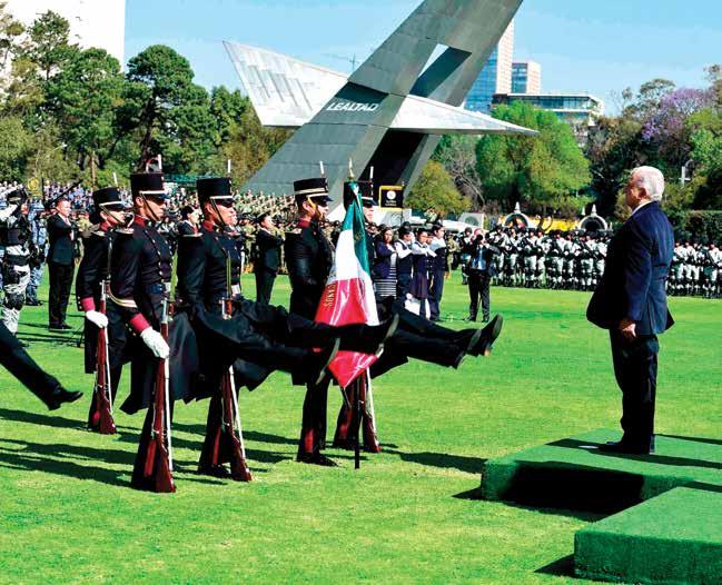l El presidente López Obrador conmemoró el Día de la Bandera en el Campo Marte y subrayó que es un símbolo de unidad de todos los mexicanos y de representación de luchas sociales PARIS SALAZAR