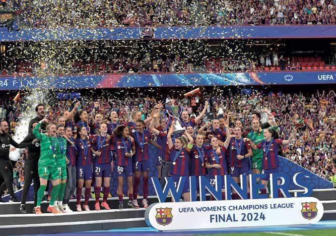 Tras disputar su cuarta final continental en fila, las catalanas cerraron una temporada 20232024 de oro, donde además del máximo galardón de clubes, ganaron La Liga, la Copa de la Reina y la Supercopa de España.