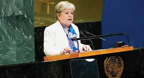 › Ante la Asamblea General de la ONU, la canciller Alicia Bárcena destacó la asunción de Claudia Sheinbaum como primera presidenta de México. Adelantó que con ella se profundizará el combate a la pobreza, la prosperidad compartida y la protección y respeto al medio ambiente. “Lo que ella dijo: ‘no llega sola, llegamos todas’”, asentó.