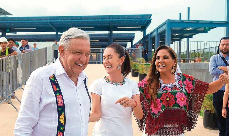 Mérida, Yuc. Claudia Sheinbaum Pardo, virtual presidenta electa, y el presidente en funciones, Andrés Manuel López Obrador, realizaron un recorrido de evaluación en el Tren Maya,