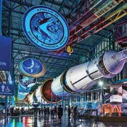 Ubicado en la costa oriental del centro de Florida, el Centro Espacial Kennedy ha sido el escenario de múltiples lanzamientos históricos, incluidas las misiones Apolo y vuelos del transbordador espacial. El centro de visitantes cuenta con exhibiciones interactivas, salas de proyección y ofrece recorridos guiados por edificios icónicos, como el hangar en donde se ensamblan los vehículos espaciales.