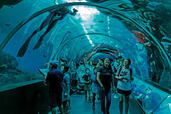 Casa de más de 100 mil residentes acuáticos, el S.E.A. –que al momento de su inauguración en 2012 fue el acuario más grande del mundo–incluye un tanque para bucear y el Ocean Restaurant, considerado la única experiencia culinaria submarina en el sudeste asiático.
