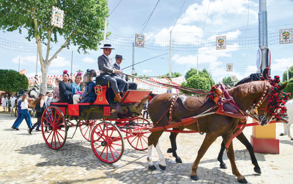 La Feria de Abril o Feria de Sevilla es una fiesta de primavera que se celebra anualmente donde el público se reúne en un gran recinto denominado Real de la Feria, con trajes de flamenca, sevillanas, calles con casetas efímeras, engalanadas con farolillos, por la que circulan jinetes y espectaculares coches de caballos y por las que pasan diariamente más de 500 mil visitantes.
