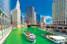 UNA DE LAS TRADICIONES MÁS ARRAIGADAS EN LA CIUDAD, EL DESFILE IRLANDÉS DE CHICAGO –REALIZADO, POR PRIMERA VEZ, EN 1843 Y CATALOGADO COMO UN EVENTO OFICIAL DE LA CIUDAD EN 1950– ESTÁ AL CENTRO DE UNA CELEBRACIÓN QUE SE EXTIENDE DESDE LOS BARES HASTA LA FAMOSA COLORACIÓN DEL RÍO QUE, DESDE 1962, SE PINTA DE VERDE EN ESTAS FECHAS.