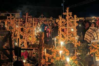 l sol hacía mucho que se había ocultado pero las calles iluminadas, las miles de voces alegres y la música que iba y venía de las trompetas a las guitarras con el vaivén del viento, indicaban que la noche apenas estaba comenzando. Los ríos de gente, iluminados por la luz de las velas y el color de las flores, corrían por la calles del centro apenas contenidos por las antiguas bardas y construcciones que caracterizan al centro de Pátzcuaro. Nosotros lo teníamos claro: esta noche, las fronteras más confia-