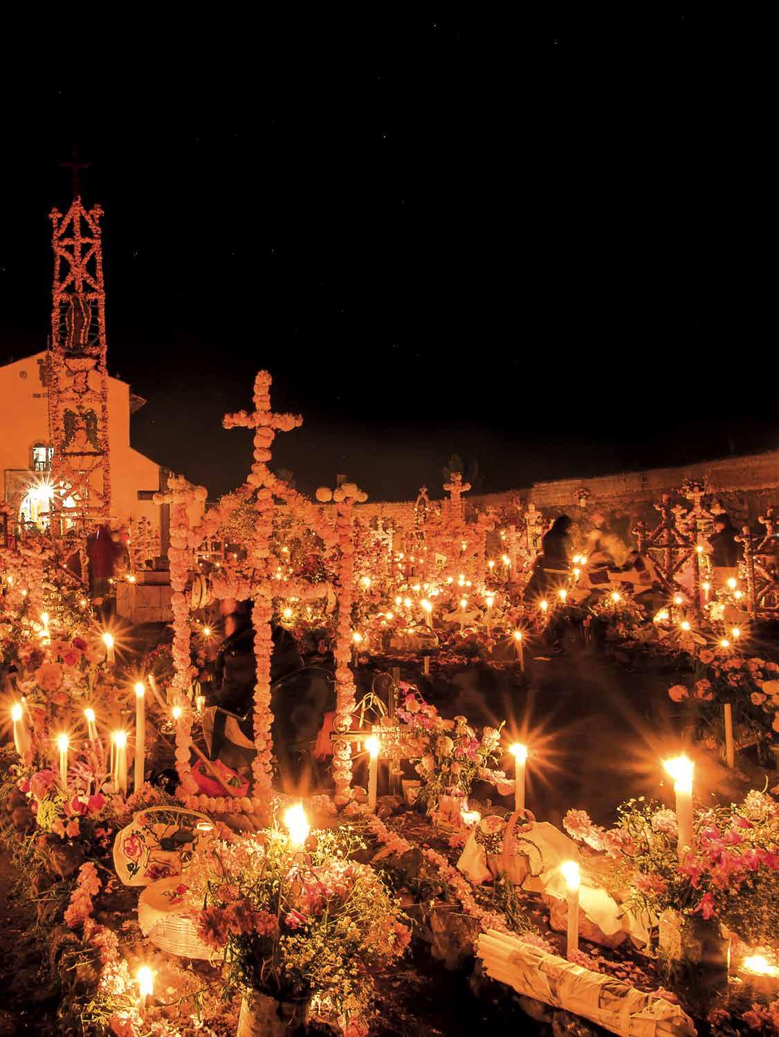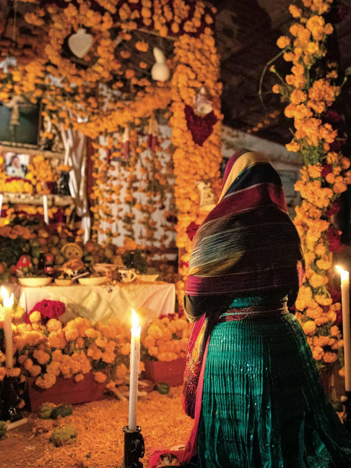 bles –entre el día y la noche, la felicidad y la tragedia, la solemnidad de los ritos y el desenfado de la fiesta; entre el principio y el final, e incluso entre lo real y lo imaginario– se borrarían bajo la luz de las veladoras, el sonido de la música, el aroma del cempasúchil y el sabor de los platillos y bebidas preparadas con cuidado, cariño y mucho tiempo para recibir a los seres queridos que, sólo por esa noche, nos vendrían a visitar. Michoacán es un estado muy orgulloso de sus paisajes,