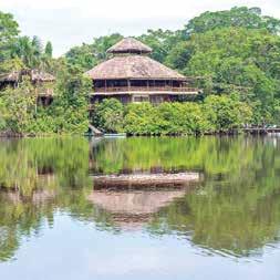 la selva amazónica con la sierra andina, ya que se accede a la región mediante un corto vuelo desde Quito a Coca. Aquí, los diferentes hoteles son el punto de partida ideal para adentrarse en la Reserva de la Biosfera y Parque Nacional Yasuní, una zona prístina que ofrece a los visitantes increíbles maravillas naturales y experiencias culturales. El diseño de los refugios te sumergen al instante en la selva tropical y las numerosas actividades te llevan al corazón de este rico ecosistema.