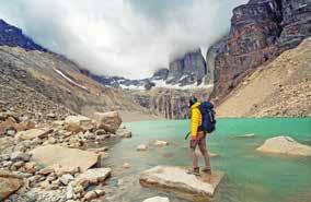n el extremo sur de la Patagonia chilena, las grandes montañas, los lagos cristalinos y los hielos eternos del Parque Nacional Torres Paine no sólo describen uno de los escenarios naturales más impresionantes del continente americano, sino que como uno de los rincones más remotos en el planeta también se han acostumbrado a cautivar la imaginación de los viajeros más aventureros. Ubicado a 80 kilómetros de Puerto Natales –el centro urbano más cercano y casa del Aeropuerto Teniente Julio Gallardo que recibe vuelos diarios desde Santiago–, el Parque, que reúne algunas de las rutas de senderismo más escénicas de Sudamérica, se despliega como la entrada a otro mundo: uno nuevo, en donde nosotros somos los primeros asistentes a la dramática puesta en escena de un planeta en libertad.