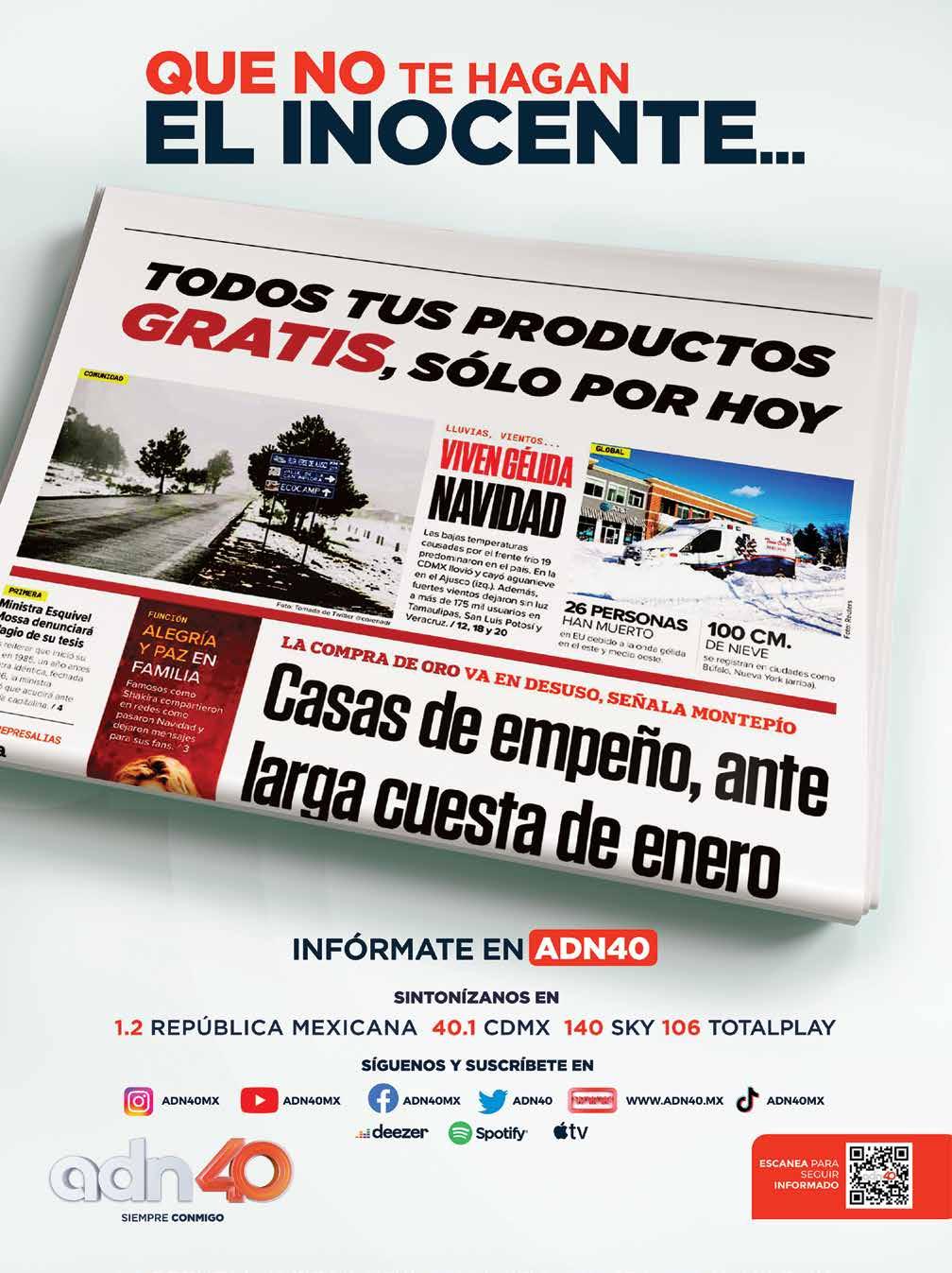 Editor responsable: Alfredo González Castro. Número de Certificado de Reserva otorgado por el Instituto Nacional del Derecho de Autor 04-2009060419022100-101. Número de Certificado de Licitud de título y Contenido No.16921. Domicilio de la Publicación: Paseo de la Reforma No. 250, Piso 24, Colonia Juárez, Del. Cuauhtémoc, C.P. 06600, Ciudad de México. Impreso en Talleres de La Crónica Diaria S.A. de C. V. Calzada Azcapotzalco La Villa No. 160 Barrio San Marcos Alcaldia Azcapotzalco, CP 02020 Publicación Diaria. Todos los derechos están reservados.