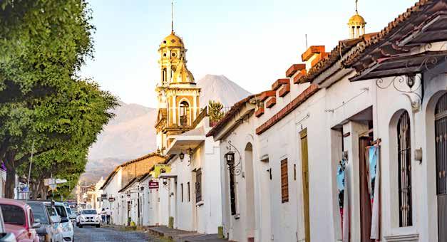 Comala se levanta sereno al pie del Volcán de Fuego, como si las montañas lo hubieran guardado desde siempre. Es un pueblo que brilla con sus casas blancas, resplandecientes bajo el sol, con techos de teja roja que parecen guardar secretos antiguos. El aire ahí es limpio y fresco, corre entre las calles empedradas y acaricia los portales donde el tiempo se aquieta. Basta mirar sus fachadas relucientes para comprender por qué a este rincón se le llama el “Pueblo Blanco de América”. El clima es suave, ni frío ni ardiente, sino templado, como si la tierra supiera regalarle a sus habitantes y visitantes un respiro permanente. Desde sus plazas se contempla la silueta majestuosa del volcán, que se alza como centinela, con su humo ligero pintando el horizonte. Esa presencia cercana le da a Comala una fuerza mítica, como si todo el pueblo se alimentara de su energía viva.
