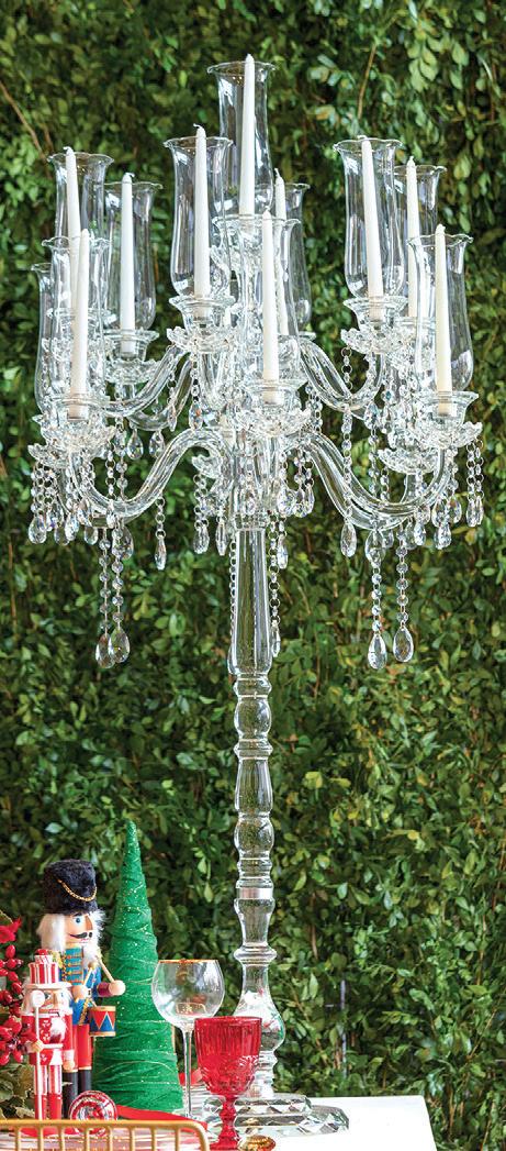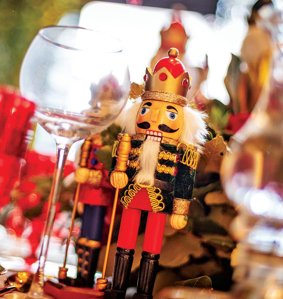 presentar un montaje clásico, elegante y contrastante. Se tomó como base cubrir la mesa con un mantel blanco, el cual permite crear una mesa balanceada acompañada de un arreglo floral que, a pesar de ser algo rebuscado, permite tener visibilidad en toda la mesa, así también como elementos de decoración extras como los cascanueces, las esferas personalizadas con los nombres de los invitados y pequeños árboles de Navidad.