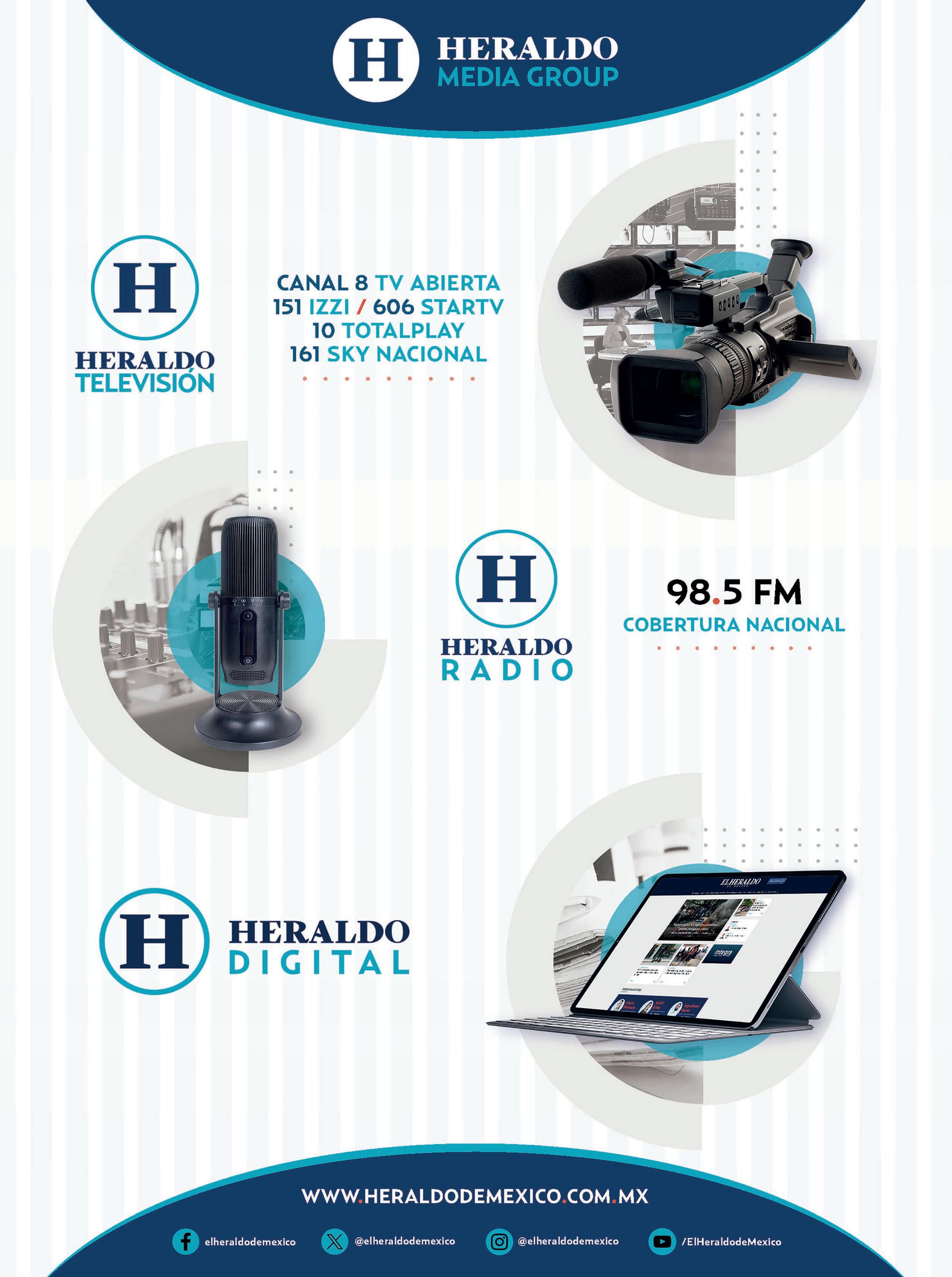 Periódico El Heraldo de México. Editor Responsable: Alfredo González Castro, Número de Certifcado de Reserva otorgado por el Instituto Nacional del Derecho de Autor: 04-2009-060419022100-101. Número de Certifcado de Licitud de Título y Contenido: 16921. Domicilio de la Publicación: Av. Insurgentes Sur, No. 1271, piso 2, ofcina 202, Extremadura Insurgentes, Benito Juárez, C.P. 03740. Impreso en LA CRÓNICA DIARIA, SA DE CV, Avenida Azcapotzalco La Villa 160, Colonia San Marcos, Alcaldía Azcapotzalco, Ciudad de México, CP 02020. Distribuidores: ARREDONDO E HIJOS DISTRIBUIDORA, SA de CV, Iturbide 18 local D, Colonia Centro de la Ciudad de México Área 4, Alcaldía Cuauhtémoc, Ciudad de México, CP 06040. ELIZABETH IVONNE GUTIÉRREZ ORTIZ, Callejón 2o de la Luz 52, Departamento 4, Interior 1, Colonia Anáhuac II Sección, Alcaldía Miguel Hidalgo, Ciudad de México, CP 11320. AEROVÍAS EMPRESA DE CARGO, SA de CV, Paseo de la Reforma 445, Piso 9, Colonia Cuauhtémoc, alcaldía Cuauhtémoc, Ciudad de México, CP 06000 Publicación Diaria No. 197, jueves 7 de noviembre de 2024.