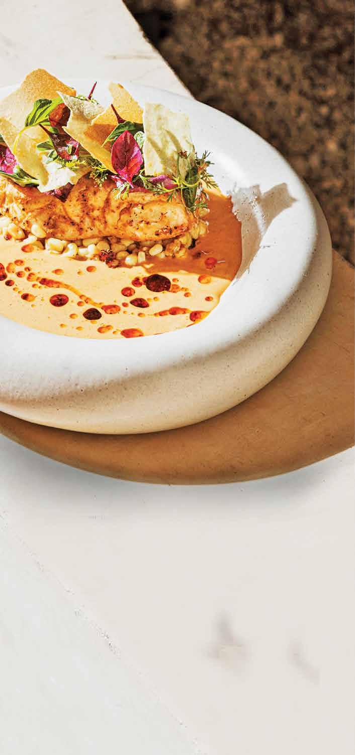 “Cuando me acerco a las mesas menciono que somos una combinación de Oaxaca y Yucatán. Respeto de dónde soy, pero también respeto donde estoy: me gusta mucho el producto local y experimentar con lo que hay aquí. Nuestro espacio, más allá de ser bonito por dentro y por fuera, es para que puedan sentir que de verdad están en México a través de los sabores”, puntualiza Erick Chacón Llevar a la mesa emplatados creativos y estéticos es una forma de imprimir su filosofía culinaria, pero actualmente, el equipo de cocina de NOL se permite experimentar con ingredientes y técnicas de otras latitudes, siempre pensando en cómo obtener perfiles diferentes de sabor o textura en preparaciones tradicionales.