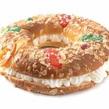 l Un pan esponjoso adornado muy festivamente con fruta confitada. En él se esconden dos diferentes objetos durante su preparación: figuras de los tres reyes magos o del niño Jesús, y un haba.