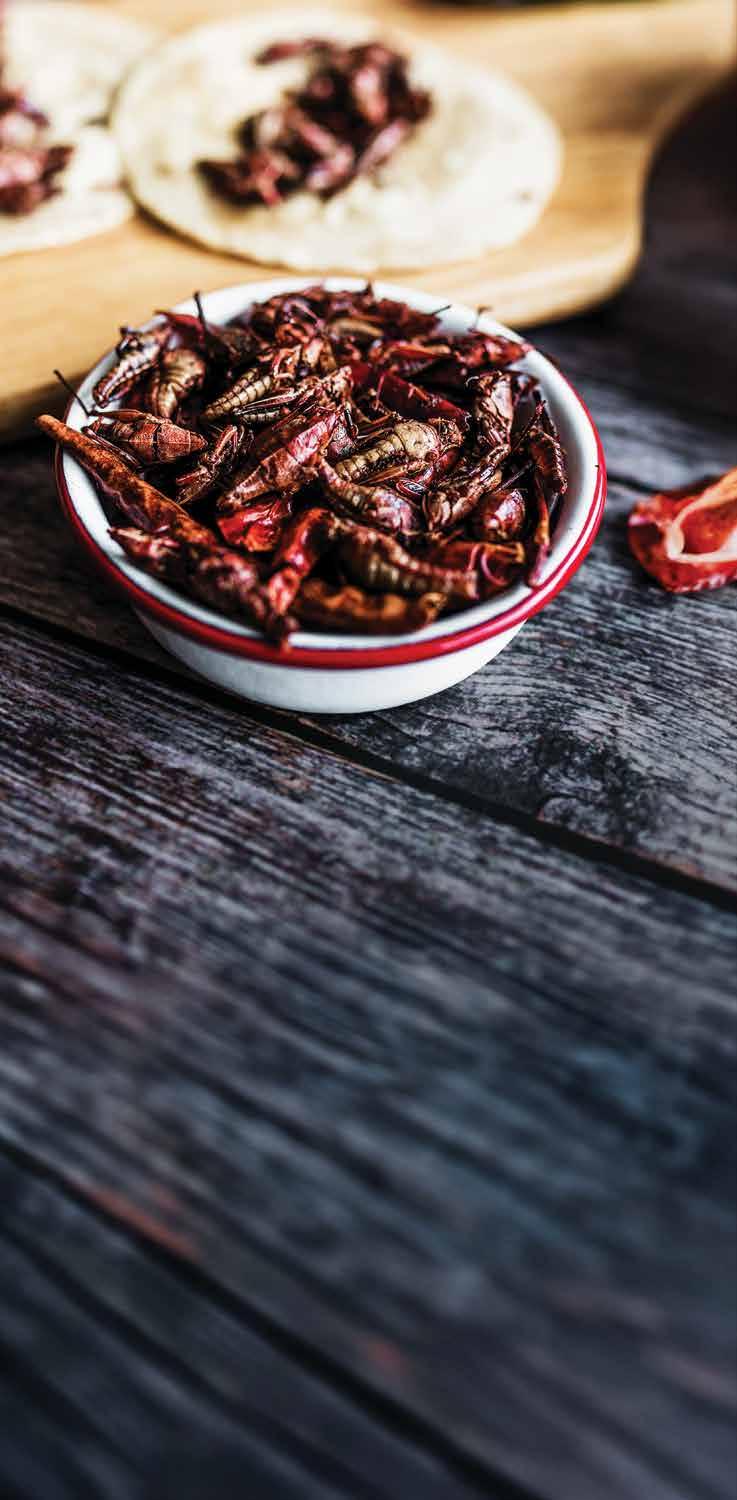 para la alimentación humana mediante congresos, publicaciones y un portal web. Los insectos forman parte de la dieta humana a lo largo de la historia, pero en las últimas décadas se mantuvieron vigentes como un detalle exótico de culturas marginales. Lo cierto es que es un alimento sano cuyas proteínas incluyen aminoácidos, ácidos grasos, magnesio, calcio y vitaminas. Hay cerca de 2 mil especies de insectos comestibles, y en México son más de 400; aunque sólo cuatro o cinco son los más típicos, como los gusanos de maguey, los escamoles y los chapulines.