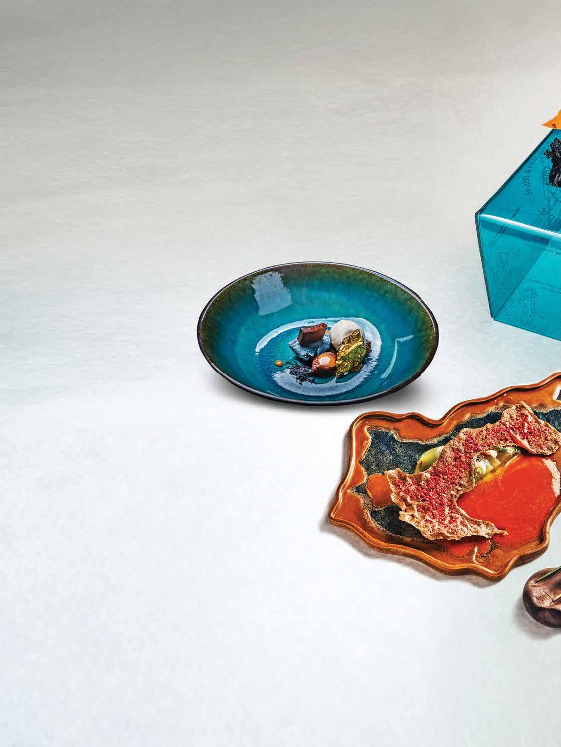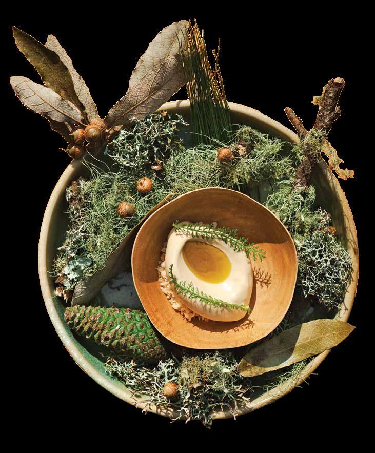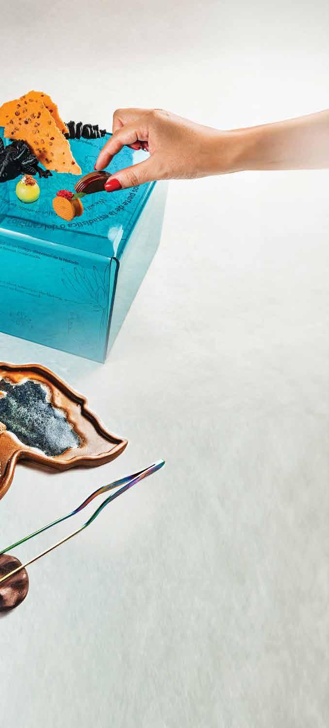 “Me gusta formar los menús por un proceso de abstracción; es decir, a partir de una idea que no necesa riamente debe ser gastronómica. El punto clave fue elaborar un menú dedicado a la mujer en el contexto del 8 de marzo y, actualmente, con tinúa en marcha el menú Día Cero, el cual habla de la escasez del agua, las sequías y de este recurso natural desde su lado más destructivo”, cuenta Pepe Salinas en entrevista con Gastrolab Uno de los platos rememora la devastación del huracán Otis con un flan de cocada con ikura, que se sirve junto con un código QR. Este enlace