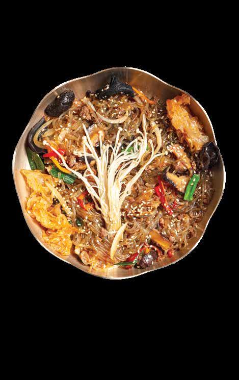 l Fideos de camote coreano con vegetales mixtos y carne de res.