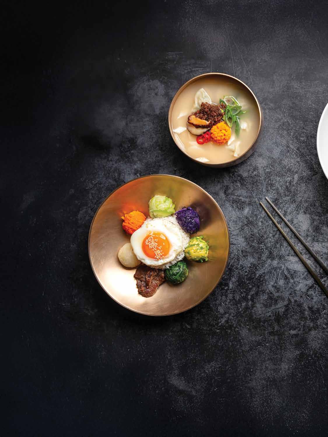 El lugar, encabezado por la chef y su madre, ofrece un menú clásico al estilo de un bistró, con platos como el Korean Fried Chicken, un pollo frito coreano bañado en salsa agridulce, con pickles de nabo coreano y el Bibimbap, un arroz con vegetales y carne, sazonado con aceite de ajonjolí y salsa de pimpiento picante; esta elaboración le recuerda a su infancia, cuando comerlo era un lujo en casa.