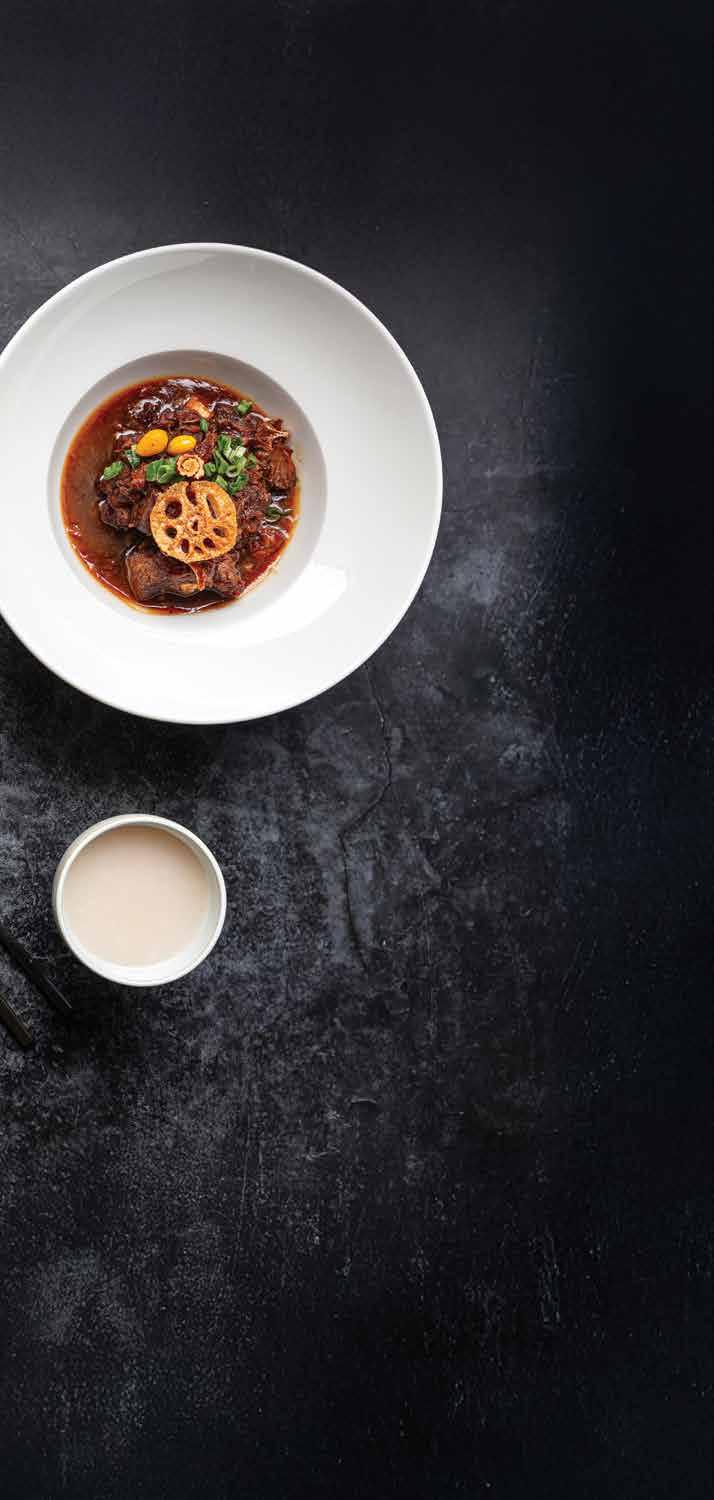 l Rabo de buey estofado, en una salsa umami a base de soya.