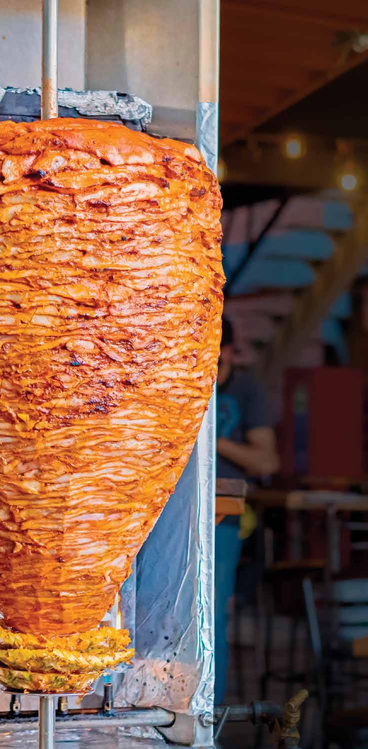 Años después, el asador llegó a la ciudad de México con la taquería El Huequito en 1959, lugar que mantiene ese estilo “oriental” que no usa el adobo de chile. Es probable que El Tizoncito, fundada en 1966, haya integrado el adobo y la piña a estos tacos. Así fue como el asador vertical se nacionalizó y los tacos al pastor alcanzaron fama universal.