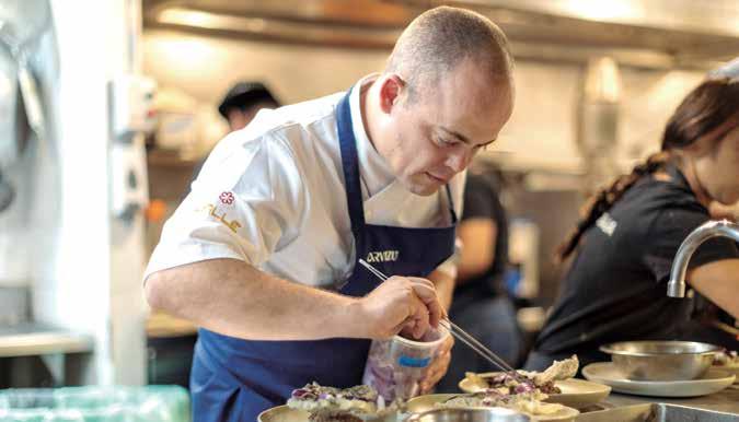 ingredientes de temporada. Funcionamos por la temporalidad, el ingrediente nos marca la propuesta y conforme van llegando, vamos haciendo platos y los vamos incorporando. El menú se conforma de 28 elaboraciones.