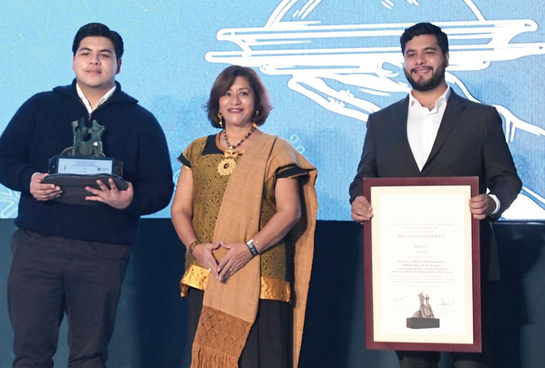 Salinas recibió su galardón de manos de Daniela Mijares y el chef Ricardo Muñoz Zurita, quienes reconocieron su papel en la gastronomía mexicana y su propuesta de cocina de autor en el Centro Histórico de la Ciudad de México.
