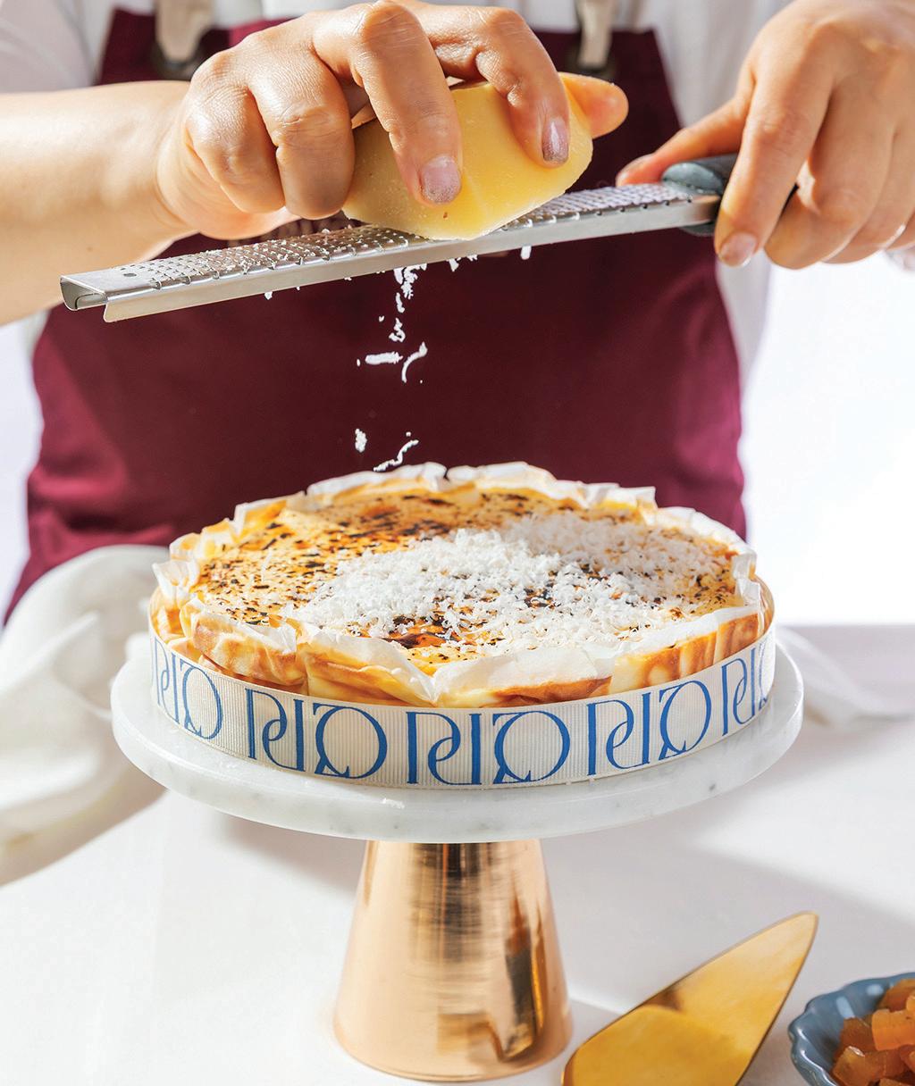 Este postre lleva una abundante porción de queso Idiazabal rallado y pequeños cubos de ate de membrillo de la más alta calidad.