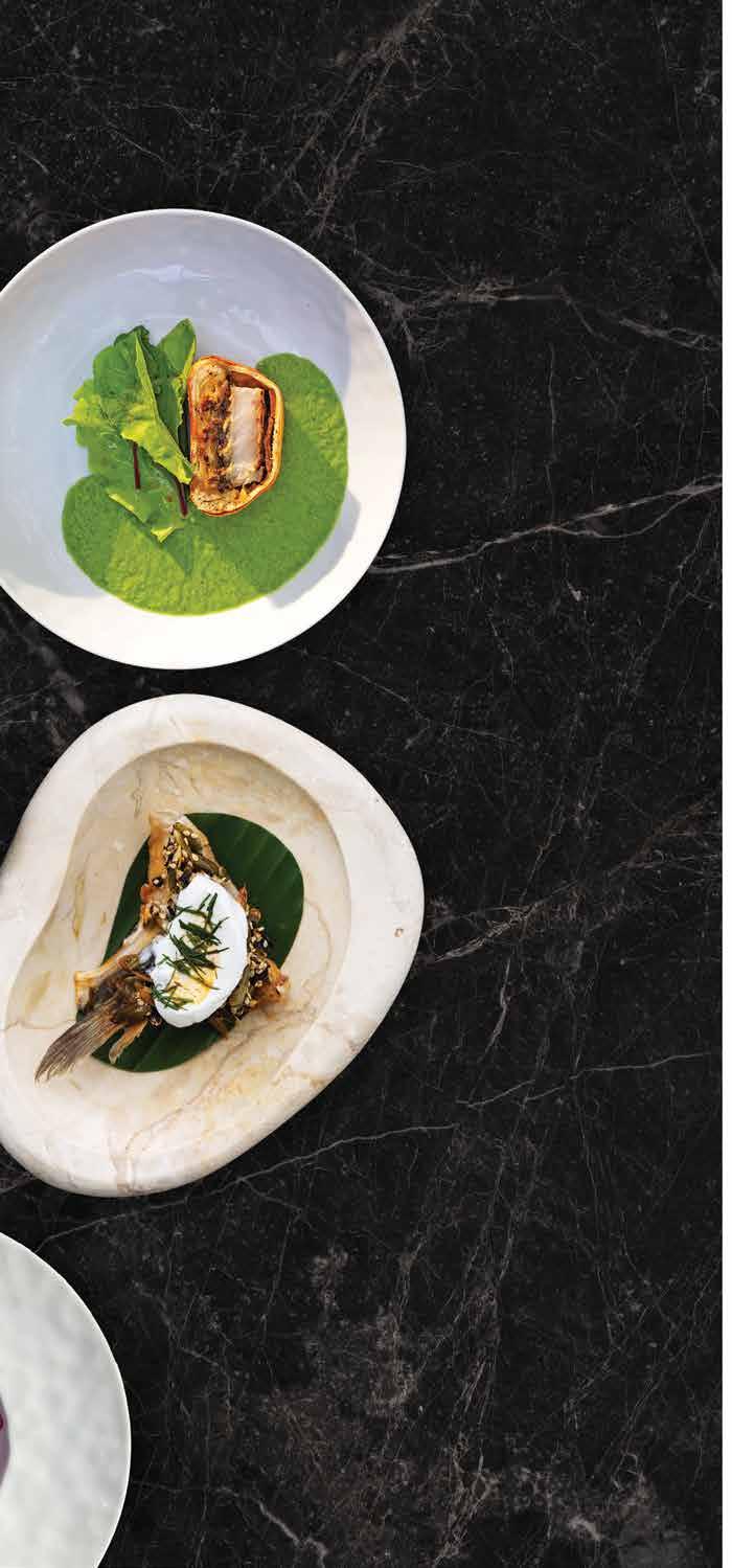 “Somos muy respetuosos de los sabores de Yucatán y, aunque solemos hacer pequeños cambios y presentar los platos de manera diferente, basta con cerrar los ojos para probar los auténticos recados y ahumados yucatecos; los sabores del lechón y el venado, o ingredientes como la piña y el camote, cultivados dentro de nuestro propio huerto”.