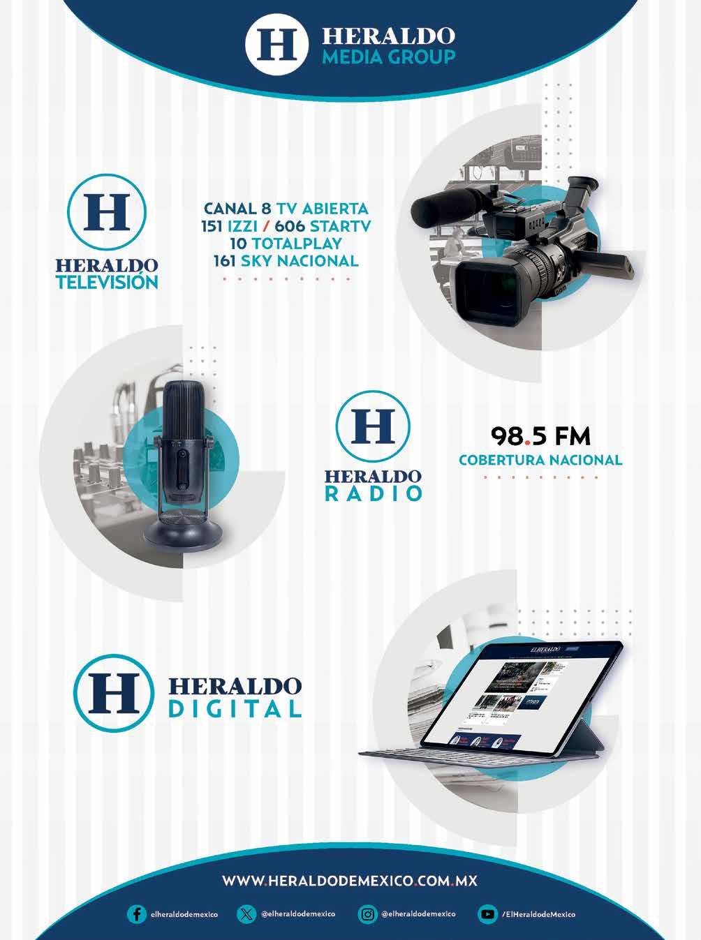 Periódico El Heraldo de México. Editor Responsable: Alfredo González Castro, Número de Certificado de Reserva otorgado por el Instituto Nacional del Derecho de Autor: 04-2009-060419022100-101. Número de Certificado de Licitud de Título y Contenido: 16921. Domicilio de la Publicación: Av. Insurgentes Sur, No. 1271, piso 2, oficina 202, Extremadura Insurgentes, Benito Juárez, C.P. 03740. Impreso en LA CRÓNICA DIARIA, SA DE CV, Avenida Azcapotzalco La Villa 160, Colonia San Marcos, Alcaldía Azcapotzalco, Ciudad de México, CP 02020. Distribuidores: ARREDONDO E HIJOS DISTRIBUIDORA, SA de CV, Iturbide 18 local D, Colonia Centro de la Ciudad de México Área 4, Alcaldía Cuauhtémoc, Ciudad de México, CP 06040. ELIZABETH IVONNE GUTIÉRREZ ORTIZ, Callejón 2o de la Luz 52, Departamento 4, Interior 1, Colonia Anáhuac II