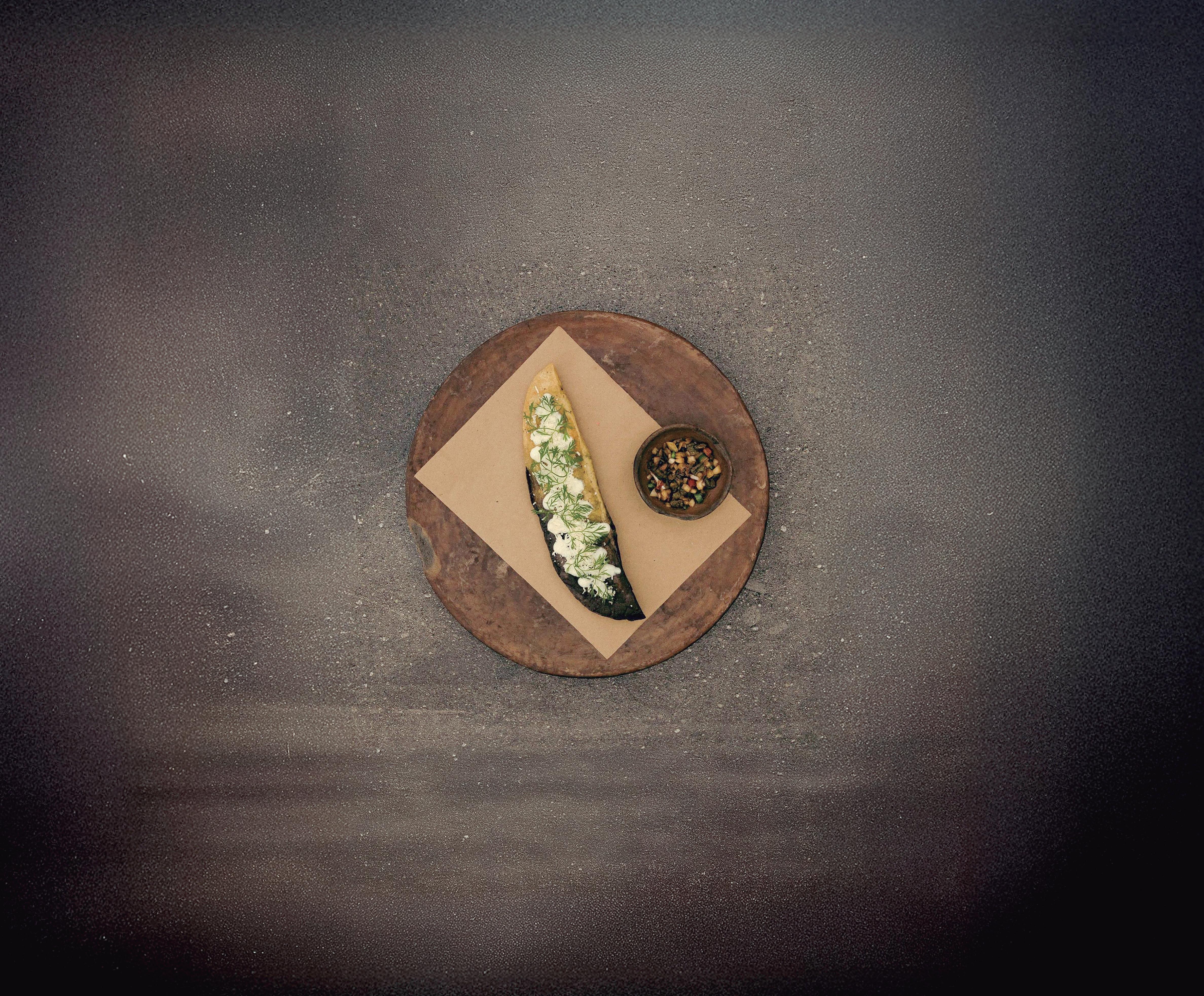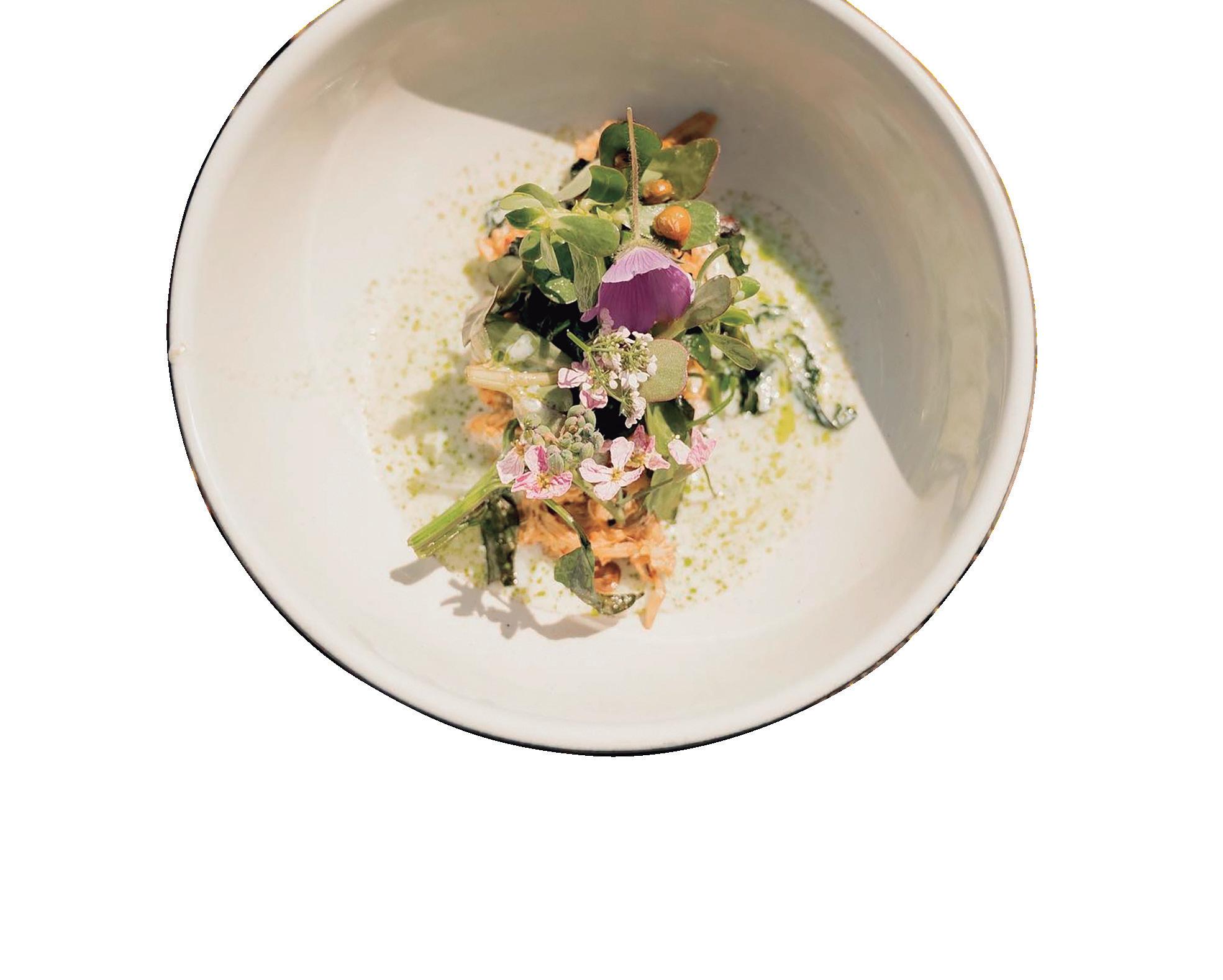 l Molotes rellenos con rabo de res y chile loco fresco. l Tlayuda de quelites con puré de frijol mantequilla y chapulines.