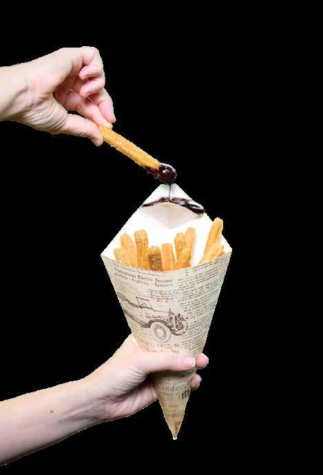 l POSTRES. Churros con chocolate, en Lucas Oil Stadium.