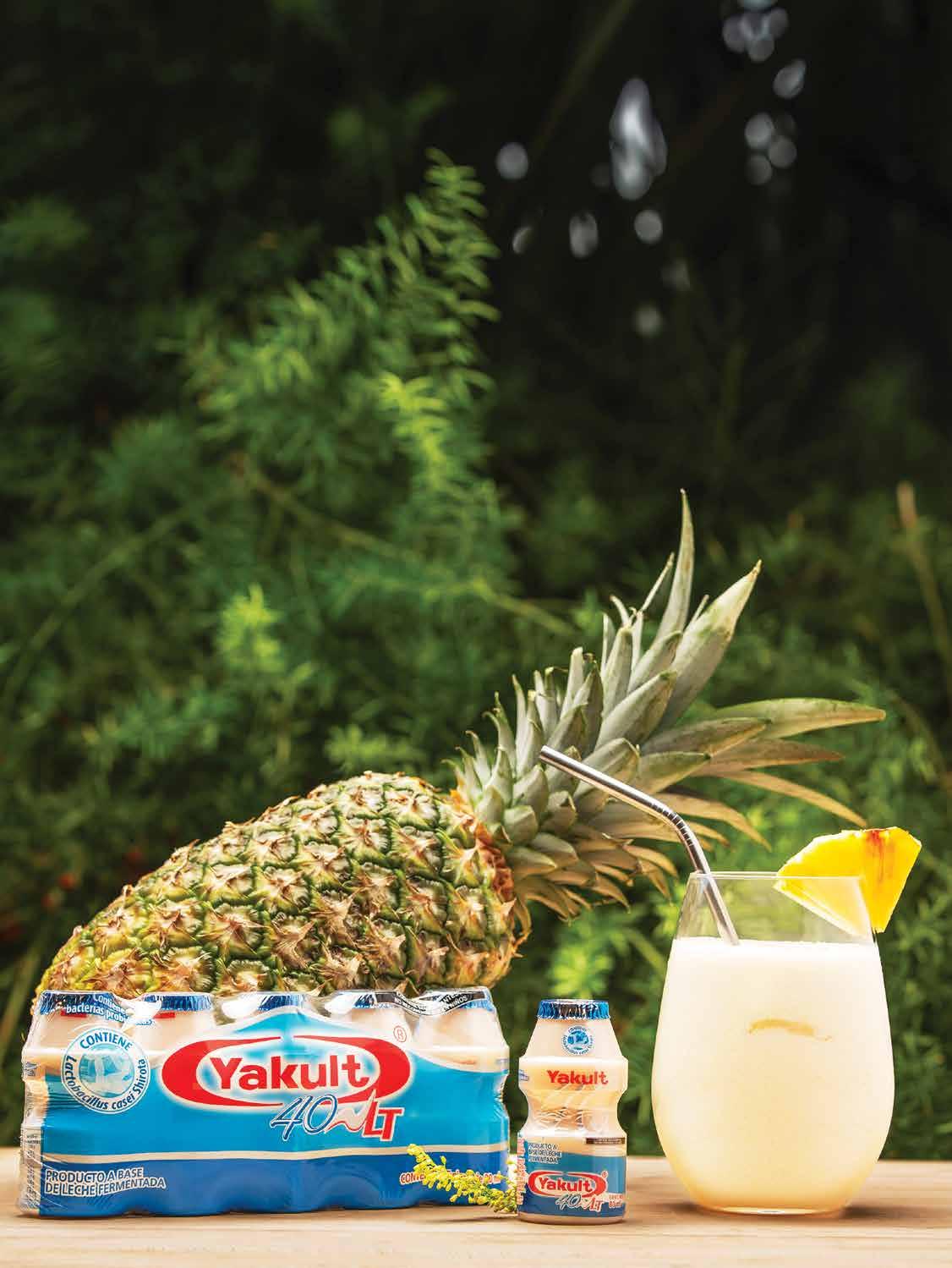 Aunque se puede disfrutar solo, con Yakult 40LT pueden elaborarse preparaciones que, además de proteger nuestro sistema digestivo, están llenas de sabor. La prueba está en esta piña colada. La combinación de piña, una fruta rica en fibra y enzimas di-