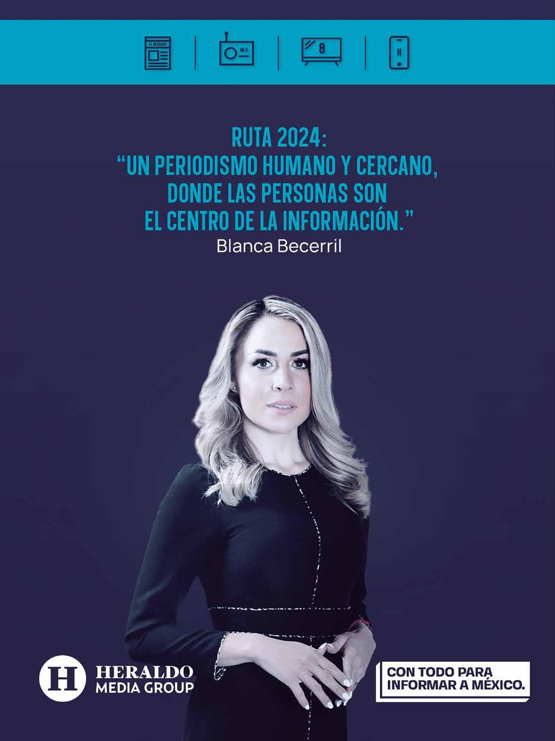 Diario El Heraldo de México. Editor responsable: Alfredo González Castro. Número de Certificado de Reserva otorgado por el Instituto Nacional del Derecho de Autor 04-2009-060419022100-101. Número de Certificado de Licitud de título y Contenido No.16921. Domicilio de la Publicación: Paseo de la Reforma No. 250, Piso 24, Colonia Juárez, Del. Cuauhtémoc, C.P. 06600, Ciudad de México. Imprenta: Impreso en Talleres de La Crónica Diaria , S.A. de C. V. Calzada Azcapotzalco La Villa No. 160 , Barrio San Marcos Alcaldia Azcapotzalco, CP 02020. Publicación Diaria. Todos los derechos están reservados. Queda estrictamente prohibida la reproducción total o parcial de los contenidos e imágenes de esta publicación sin previa autorización de El Heraldo de México. El contenido de los artículos es responsabilidad exclusiva de los autores. ANGEL MIERES ZIMMERMANN PRESIDENTE DEL CONSEJO DE ADMINISTRACIÓN MARÍA CRISTINA MIERES ZIMMERMANN VICEPRESIDENTA DE DESARROLLO CULTURAL Y SOCIAL ANTONIO HOLGUIN ACOSTA VICEPRESIDENTE DE RELACIONES INSTITUCIONALES FRANCO CARREÑO OSORIO DIRECTOR GENERAL ADRIÁN PALMA ARVIZU DIRECTOR CREATIVO adrian@elheraldodemexico.com ARMANDO KASSIAN DIRECTOR DIGITAL armando.kassian@elheraldodemexico.com JUAN CARLOS CELAYETA DIR. COMERCIAL Y RELACIONES INSTITUCIONALES juan@elheraldodemexico.com JORGE ALMARAZ LÓPEZ EDITOR GENERAL jorge@elheraldodemexico.com IVÁN RAMÍREZ VILLATORO EDITOR EN JEFE ivan@elheraldodemexico.com RAYMUNDO SÁNCHEZ PATLÁN SUBDIRECTOR EDITORIAL raymundo@elheraldodemexico.com ANDREA MERLOS LÓPEZ DIRECTORA HERALDO TELEVISIÓN andrea@elheraldodemexico.com RAFAELA KASSIAN MIERES DIRECTORA SOFT NEWS / GASTROLAB ALFREDO GONZÁLEZ CASTRO DIRECTOR EDITORIAL ADRIÁN LARIS CASAS DIRECTOR HERALDO RADIO adrian.laris@elheraldodemexico.com FRANCISCO NIETO BALBINO EDITOR PAÍS / CDMX / SAMUEL RUBÉN OCAMPO BRITO EDITOR EDOMEX / EDOS /JOSÉ CARREÑO FIGUERAS EDITOR ORBE / ALIDA PIÑÓN EDITORA ARTES Y CÚPULA / NAYELY RAMÍREZ MAYA EDITORA ESCENA / MIRIAM LIRA PACHECO EDITORA GASTROLAB Y ESCAPADA H / AILEDD MENDUET HUERTA EDITORA PANORAMA / DANIELA MICHELINE ZAMBRANO CADENA EDITORA MENTE MUJER / HÉCTOR JUÁREZ CEDILLO EDITOR META ANTONIO CERVANTES CLAUSELL DIRECTOR EDITORIAL EDICIÓN QUINTANA ROO HUGO ARCE EDITOR QUINTANA ROO