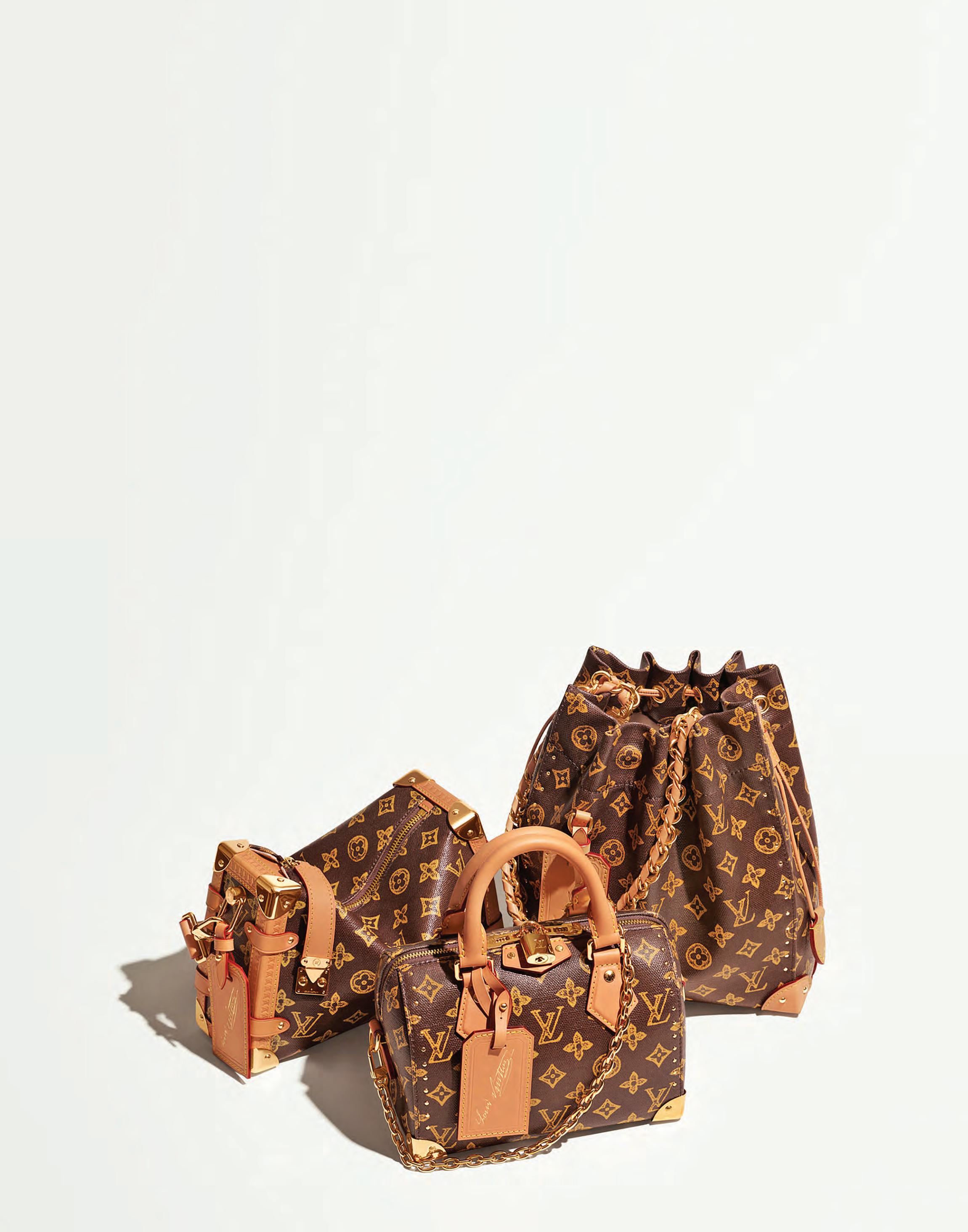 La colección Time Trunk une el pasado y el presente a través con una reinterpretación de las texturas y detalles metálicos de los baúles históricos de Louis Vuitton, transformando la herencia en una ilusión artística.