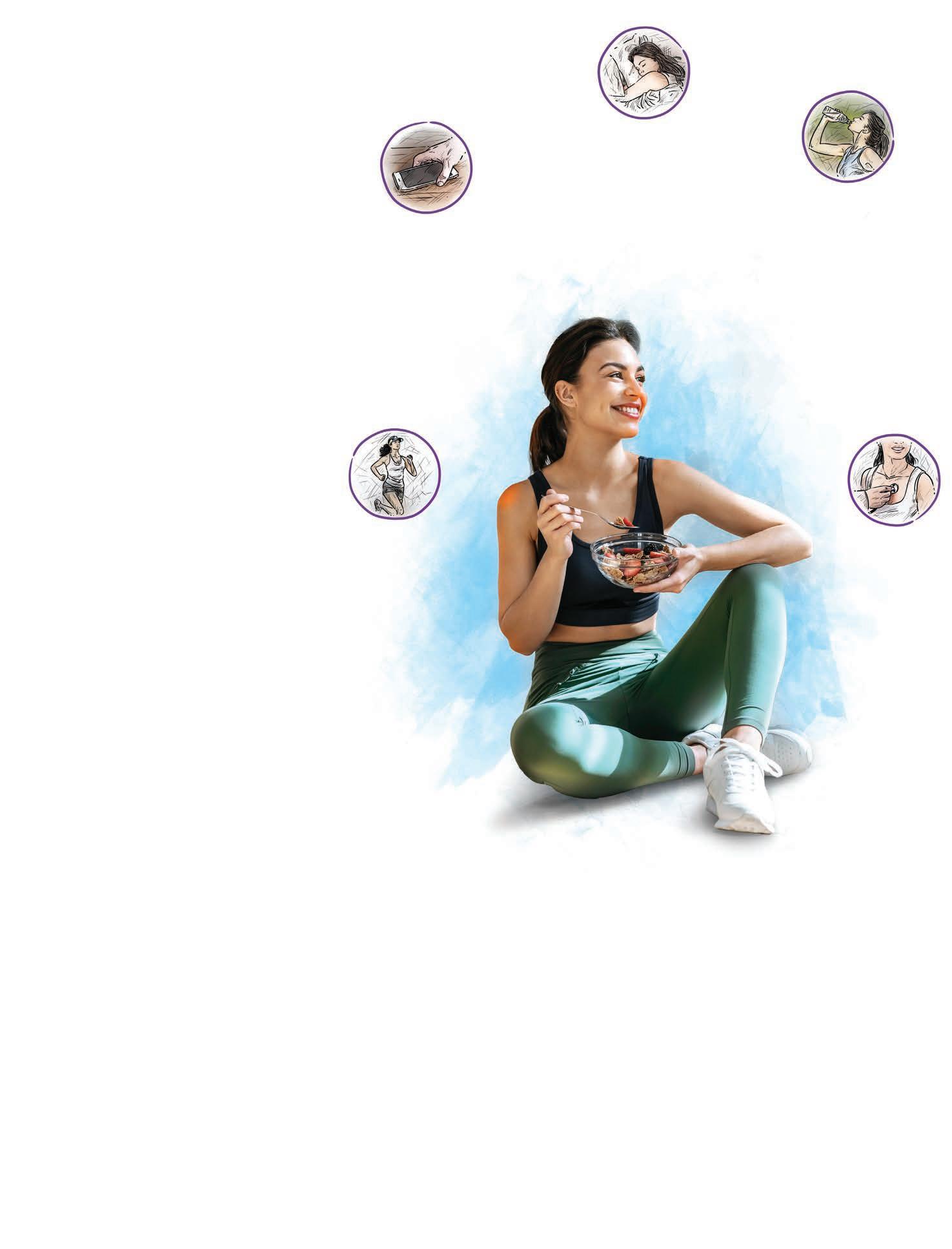 l Tomar agua es esencial, empieza llevando siempre un termo contigo y reduce la ingesta de bebidas azucaradas y alimentos procesados. Prepara con anticipación tu comida para que sea más sencillo.