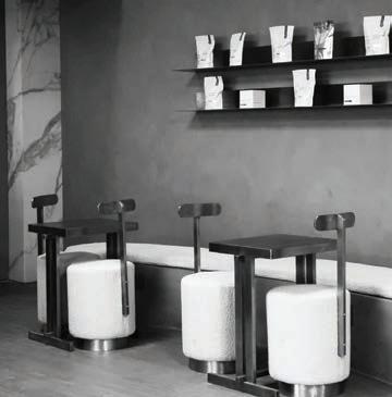 l El espacio simula un museo del colágeno de estilo minimalista y muy fotogénico.