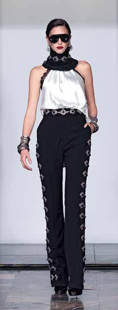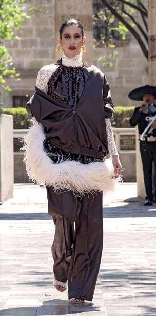 El diseñador presentó “Tapatía”, un homenaje a su tierra de origen. Con una inspiración clara en el mariachi, crea piezas con una visión contemporánea reinterpretando los códigos del traje de charro a través de detalles como botonaduras, moños y bordados, de forma sofisticada y femenina que es algo característico de su firma.