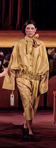 La colección evoca identidad, transformando la voz a través del textil. Exploran cortes, curvas y variaciones sutiles que generan tensión, pero al mismo tiempo fluidez, en tonos neutros con guiños de color como el amarillo o el azul, en silutas amplias. Con el Teatro Degollado como escenario y la voz de Ely Guerra el mensaje se intensifica.