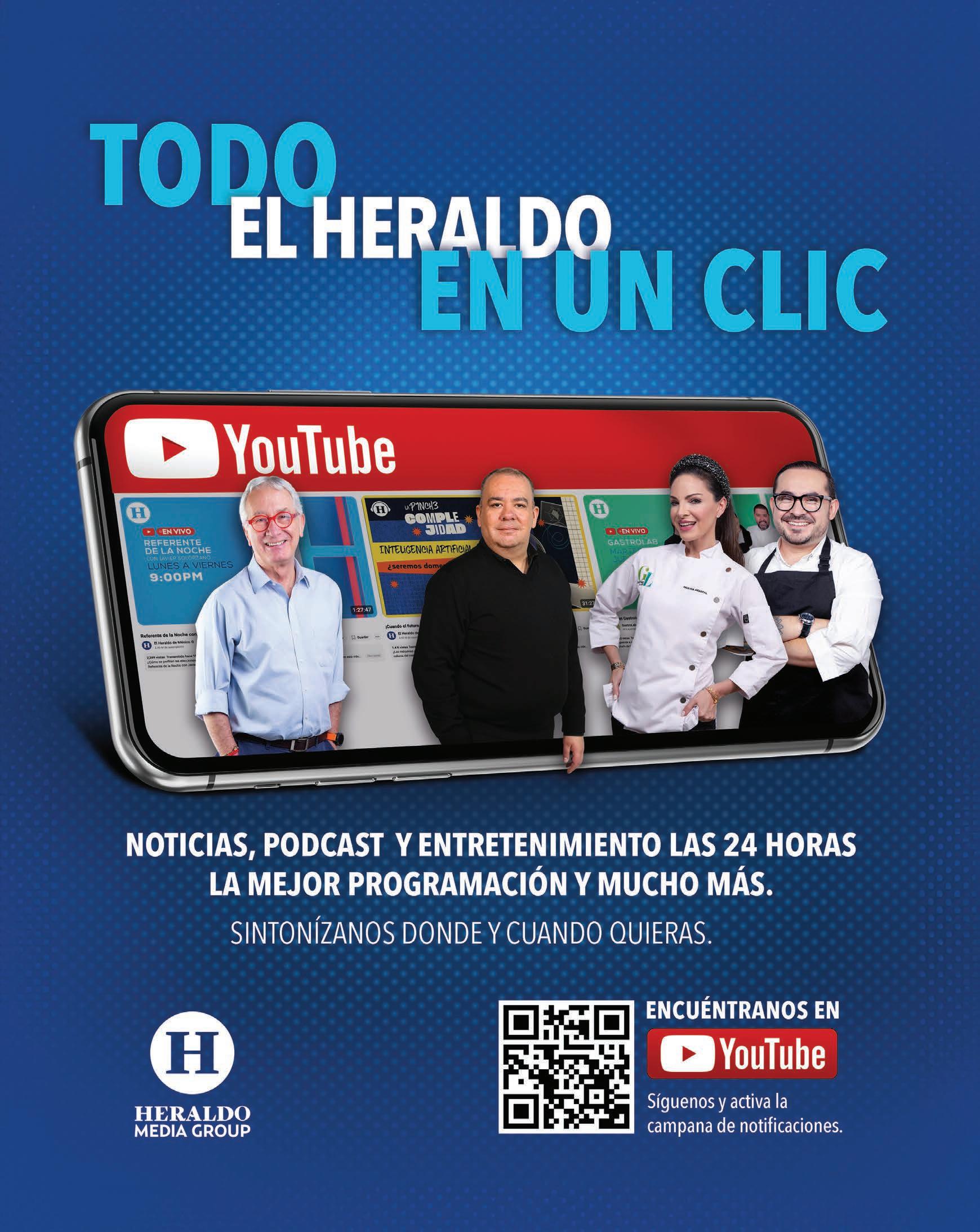 Periódico El Heraldo de México. Editor Responsable: Alfredo González Castro, Número de Certificado de Reserva otorgado por el Instituto Nacional del Derecho de Autor: 04-2009-060419022100-101. Número de Certificado de Licitud de Título y Contenido: 16921. Domicilio de la Publicación: Av. Insurgentes Sur, No. 1271, piso 2, oficina 202, Extremadura Insurgentes, Benito Juárez, C.P. 03740. Impreso en LA CRÓNICA DIARIA, SA DE CV, Avenida Azcapotzalco La Villa 160, Colonia San Marcos, Alcaldía Azcapotzalco, Ciudad de México, CP 02020. Distribuidores: ARREDONDO E HIJOS DISTRIBUIDORA, SA de CV, Iturbide 18 local D, Colonia Centro de