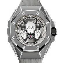 Este reloj de 43 mm incorpora el arte de KAWS en ambas caras del reloj y rinde homenaje a las primeras obras del artista. Companion aparece bajo el cristal de zafiro y su rostro y sus manos parecen tocar la superficie interior. El personaje está hecho completamente en titanio y 3D, con una alternancia de acabados satinados y arenados que aportan textura y profundidad a la figura, al mismo tiempo que potencian su silueta redondeada. Sus emblemáticos ojos en forma de X se han cortado en el componente de titanio y se han revestido con una fina capa de laca gris, además de que el tourbillon del reloj simboliza el corazón palpitante de Companion, lo que desdibuja las líneas creadas entre el personaje y el movimiento.