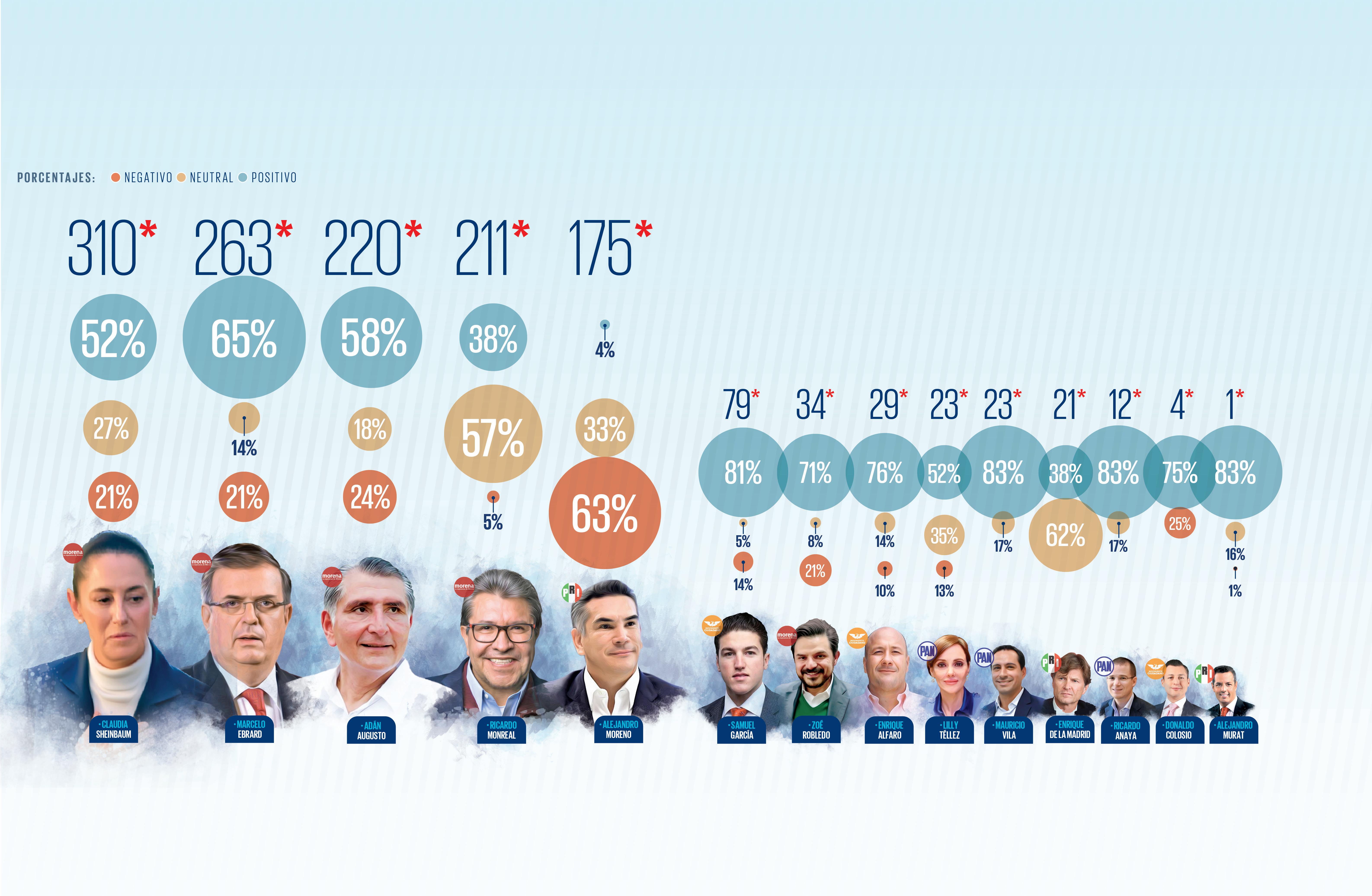 ACAPARA MEDICIÓN CLAUDIA SHEINBAUM; LE SIGUEN MARCELO EBRARD, ADÁN AUGUSTO LÓPEZ Y RICARDO MONREAL. DE LA OPOSICIÓN, LOS NEGATIVOS LOS CARGA ALEJANDRO MORENO POR JUAN RICARDO PÉREZ-ESCAMILLA G JRPEREZ@CENTRALIP.COM.MX/@JUANRPEREZE