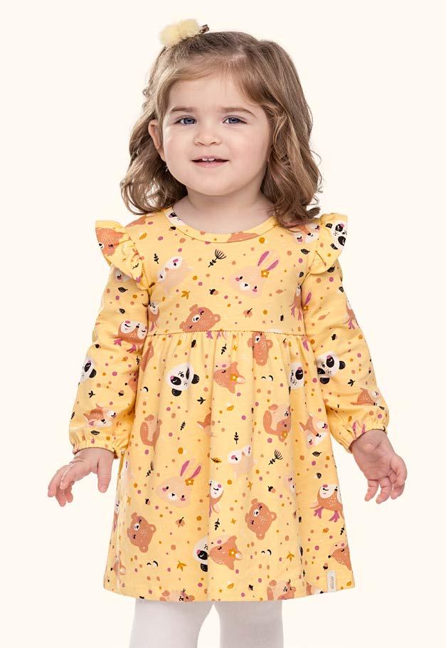 Conjunto com Vestido em Molecotton Felpado Estampado e Faixa de Cabelo em Cotton Leve