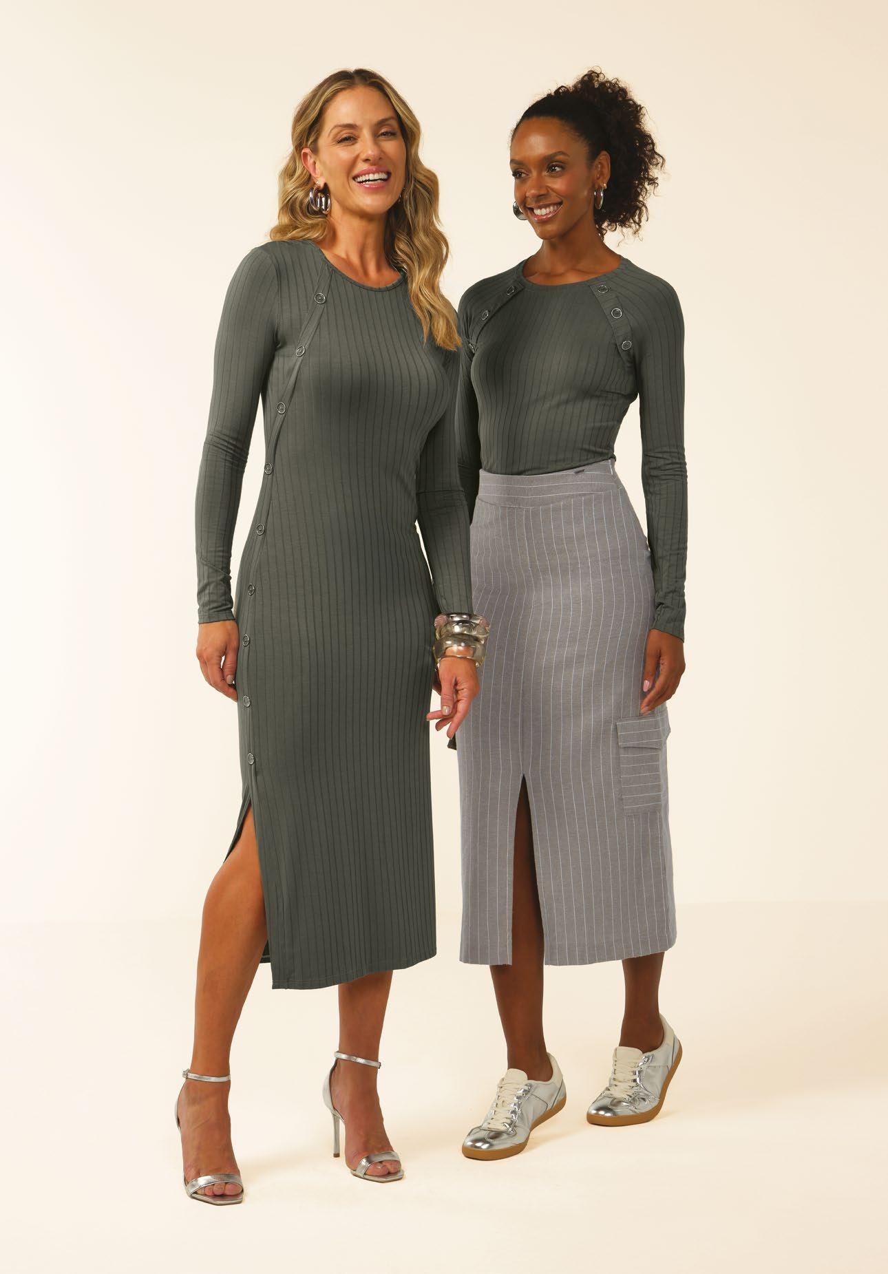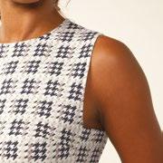 As retilíneas aparecem em golas, punhos e barra. Com textura marcada e estruturada valorizam o design e acabamentos das peças. Um toque moderno para compor looks exclusivos e diferenciados.