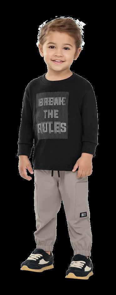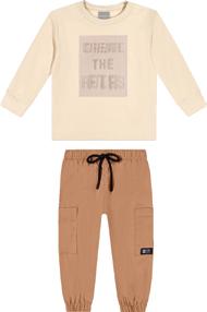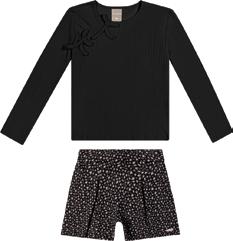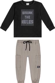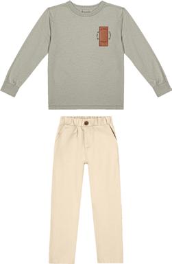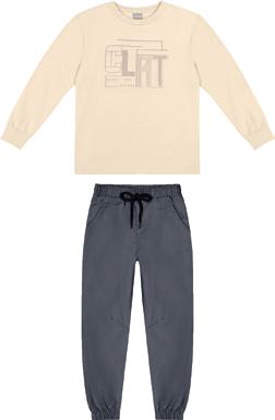 Conjunto com Camiseta em Meia Malha e Calça em Polistrech Maquinetado Set with T-shirt in Jersey and Pants in Polystrech Conjunto con Camiseta de Punto y Pantalón de Polystrech 74248